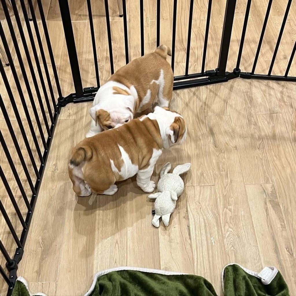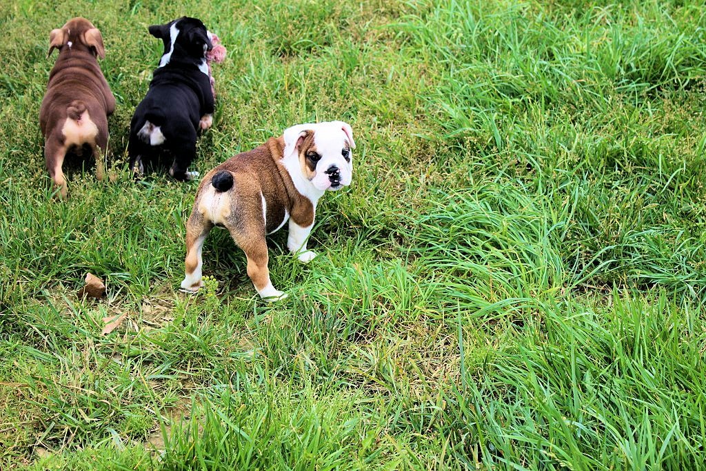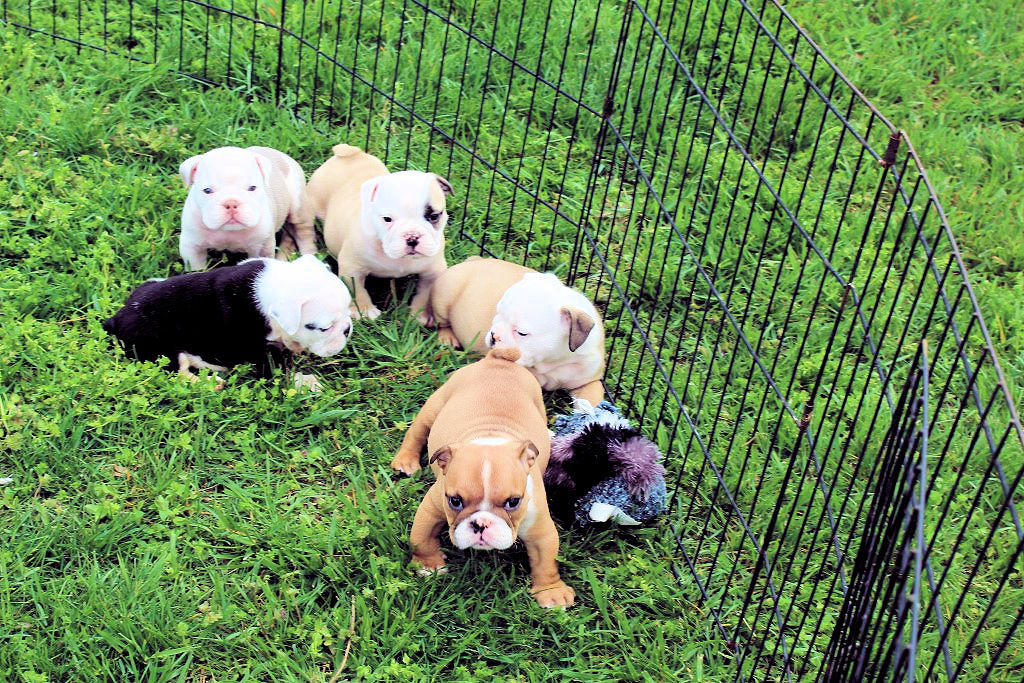 As a top AKC English Bulldog breeder, one of our goals is to prepare every one of our puppy’s for their future life while they are at our home. We want to ensure they are provided with as many experiences as possible in their early life so they adjust to their new homes as smoothly as possible. A proper socialization program will provide the building blocks for future training, improve human/canine relationships as the puppy grows, and will even help foster positive relationships with other dogs and pets in their new home.